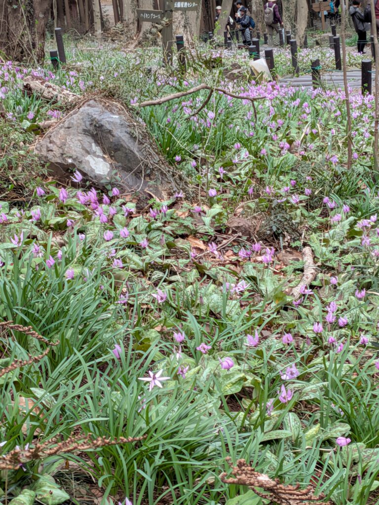 そこから中岳を経由してカタクリの園を歩く周遊路は見事なカタクリが咲き乱れます。