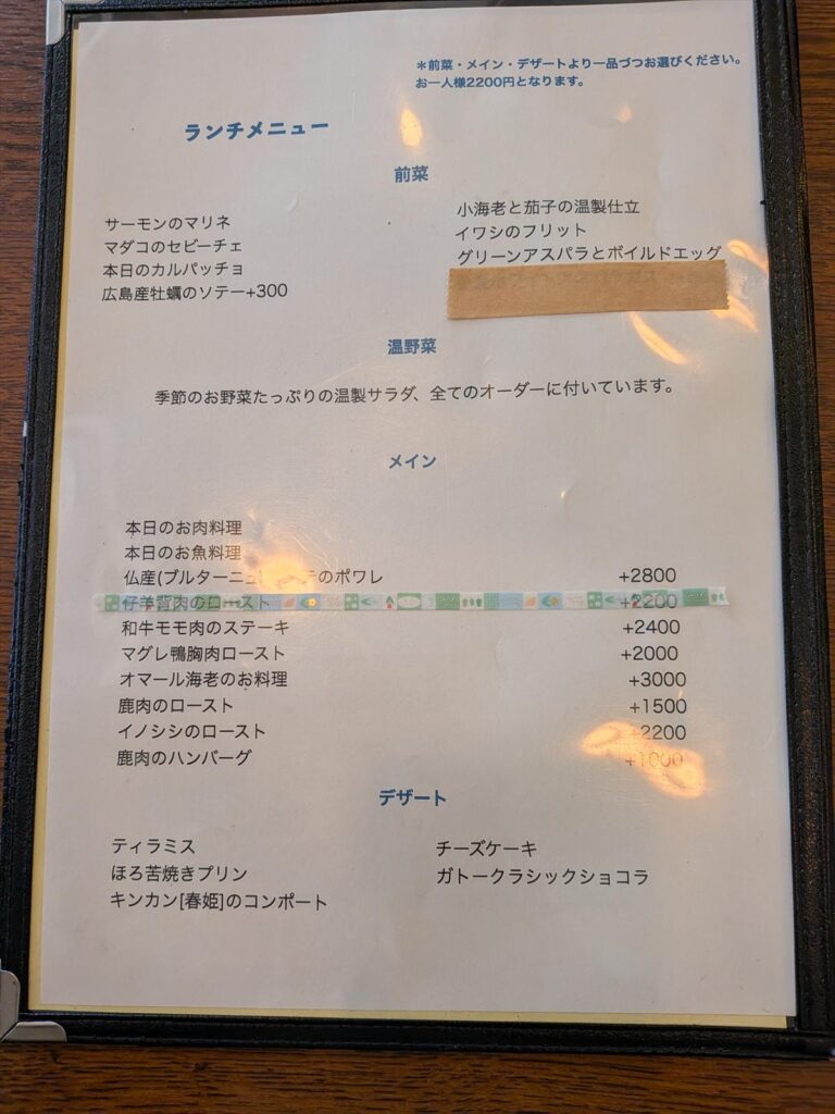 メニューは基本セット2200円