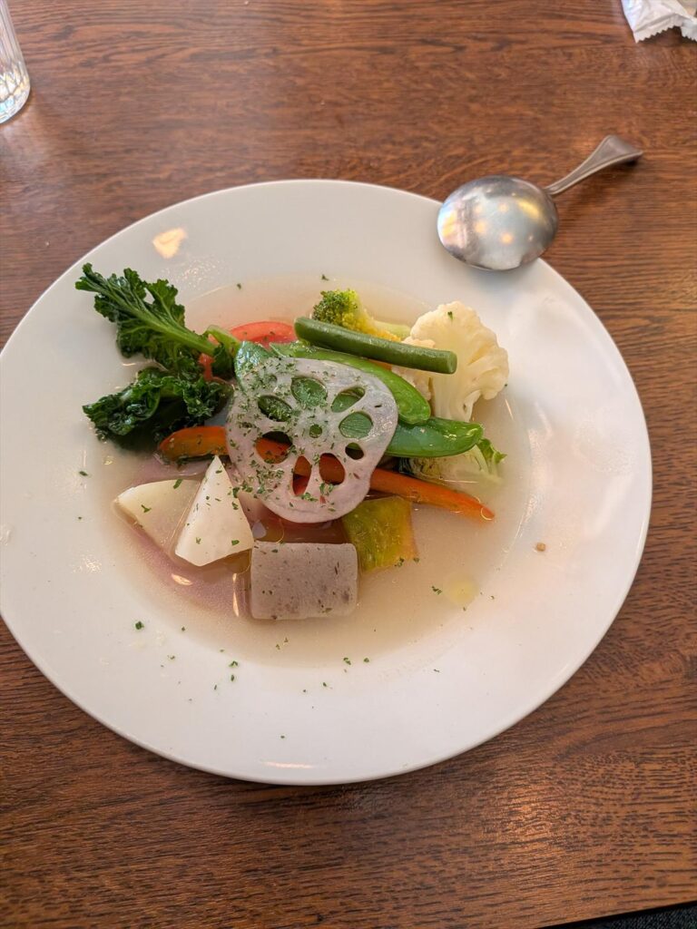 これに温野菜スープとパンが付いてこの値段です・・・