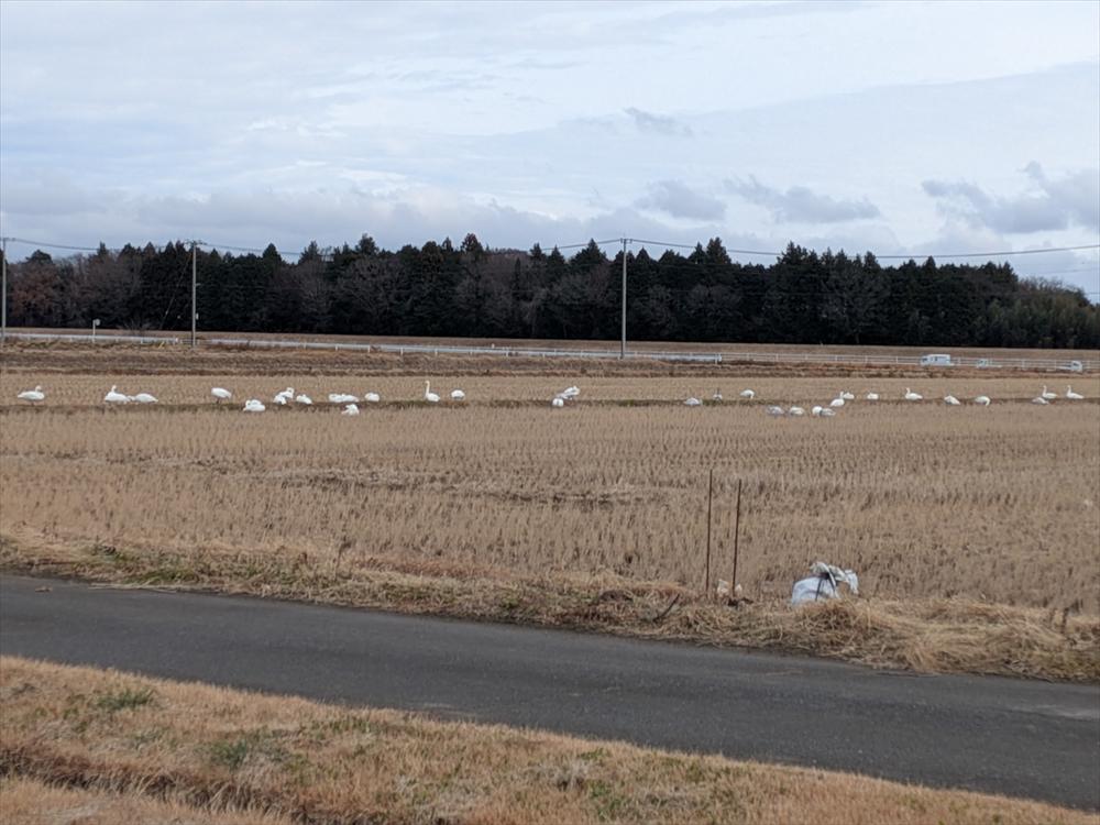 宇都宮市の北部(旧河内町)にある水の張った田んぼには、2019年ごろから毎年ハクチョウがくるようです。